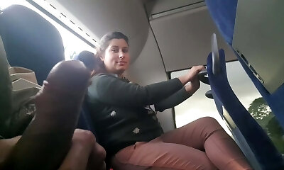 Exhibitionist Seduces MILF to Gargle and Jerk His Dick in Bus Until He Blows A Load
