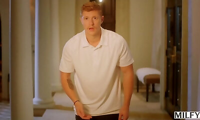 la baby-sitter adolescente accepte d'avoir une relation ddlg avec ses patrons et de jouir sur son pantalon.la petite blonde suce les gros seins de la milf