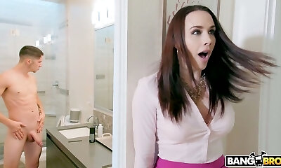 j' espionne mon demi-frère pendant qu & # 39; il prend sa douche alors je finis par lui donner ma chatte et mon cul