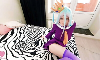 Lil' Shiro lost the game to her stepbrother Sora and gave herself to him, fulfilling his every whim