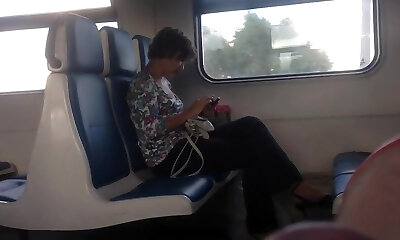 Cock out on the train just inches from her forearm