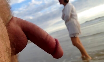 Public erection CFNM beach encounter inbetween lady and male exhibitionist