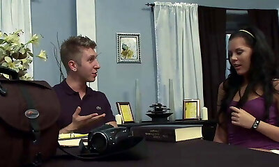 Annika Adams ultra-cute Latina in a dressing room finds herself face to face with big white cock glory-fuck hole Joe Blow.