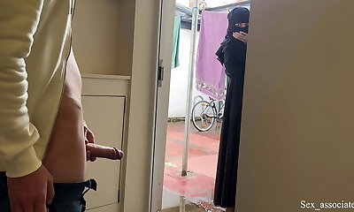 Publick Dick Showing. I pull out my manmeat in front of a young pregnant muslim neighbor in niqab and she helped me jizm